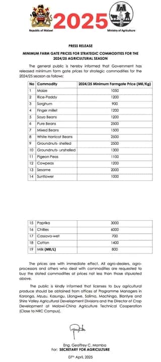 Katswiri pa nkhani zamalimidwe Leonard Chimwaza wapempha alimi m’dziko muno kuti aonetsetse kuti mitengo yogulira mbewu yomwe yangotulutsidwa kumene ndi boma ikutsatidwa.